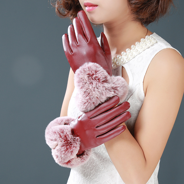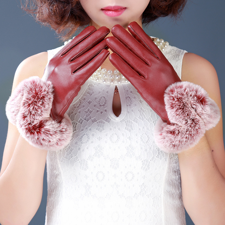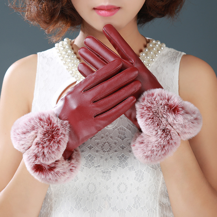寒冬必備氣質兔毛皮革觸屏觸控手套